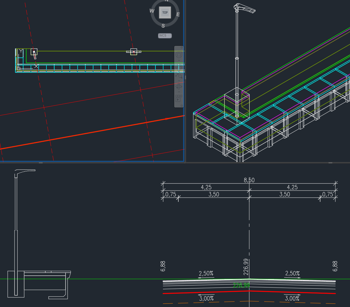 Při vytvoření promítání je možné smazat původní data promítání a vytvořit průřezy těles v situaci.
