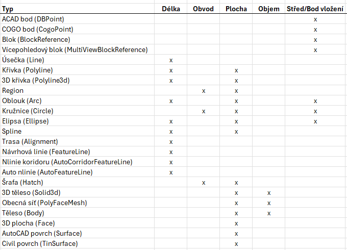Funkce na rychlé sečtení vlastností entit ve výkrese pro výkazy.